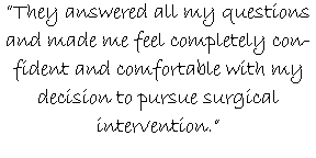 Dr. Tolentino is proud to combine highly refined surgical skills with practical insights about how a patient’s condition affects his or her quality of life. His patients appreciate his honest and compassionate approach to care.